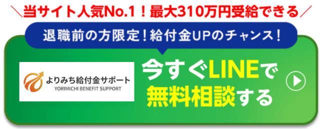 - 24時間いつでもLINEで問い合わせできる ※310万円の受給は、特定の条件下における受給総額の上限例です。実際の受給額や日数は、年齢・退職前の給与・勤続年数など個別の状況によって異なります。